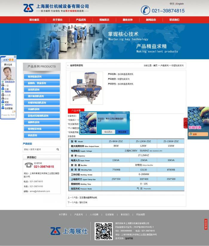 展仕機(jī)械主營業(yè)務(wù)可分為三大類:全自動(dòng)吸塑成型機(jī)、全自動(dòng)厚板材吸塑成型機(jī)生產(chǎn)線、高頻熔接機(jī)等;產(chǎn)品廣泛應(yīng)用于吸塑包裝,電子,精密注塑,汽車零部件、衛(wèi)浴潔具,箱包燈飾,廣告標(biāo)牌,器械(電器)外殼及內(nèi)膽、托盤襯墊以及醫(yī)療和玩具等塑料制品的加工與生產(chǎn)。公司同時(shí)還可為客戶提供生產(chǎn)配套所需的各種原材料及精密鋁合金模具定制服務(wù).