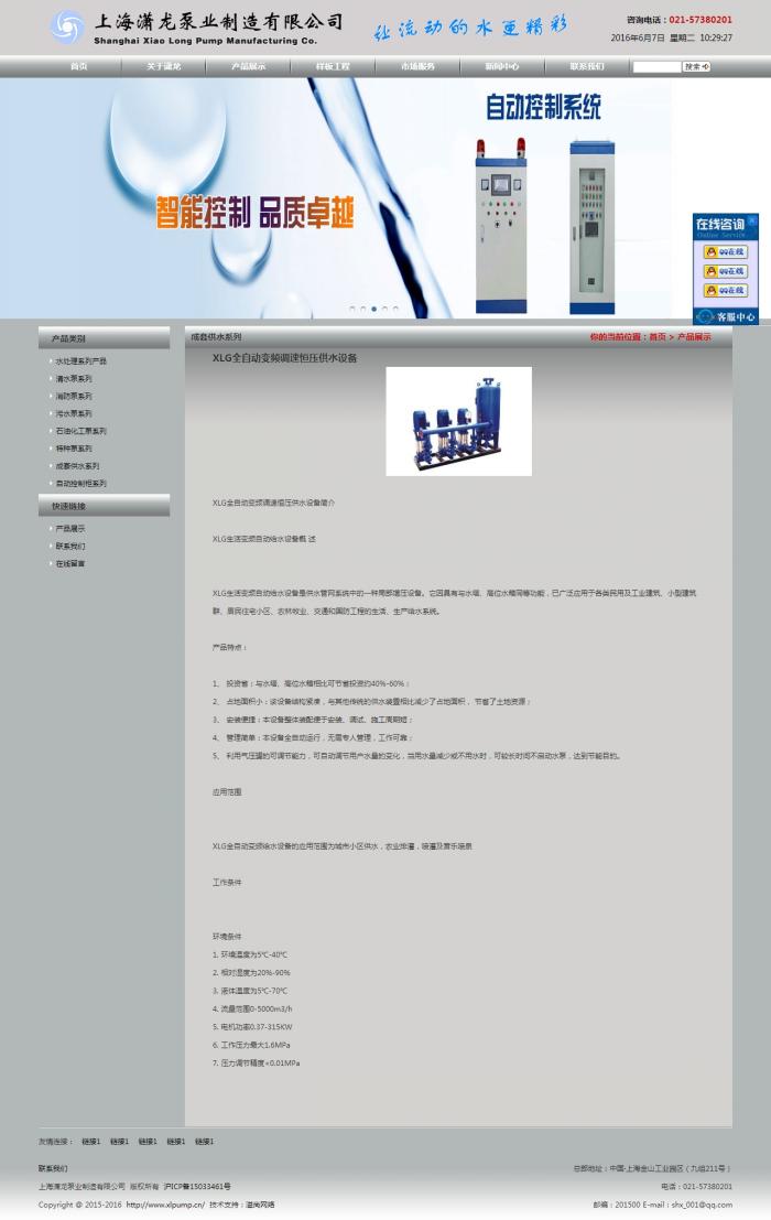 上海瀟龍泵業(yè)制造有限公司是由原國(guó)營(yíng)滬申水泵廠轉(zhuǎn)制改組,由國(guó)內(nèi)多位流體技術(shù)專家發(fā)起成立,是以泵類產(chǎn)品制造為中心,集研發(fā)、生產(chǎn)、銷售為一體的股份制企業(yè) 。公司擁有一支高素質(zhì)的員工隊(duì)伍,產(chǎn)品品種達(dá)八百多種,涵蓋水泵系列、無(wú)負(fù)壓供水設(shè)備、生活、消防成套供水設(shè)備、變頻控制柜、消防控制柜、閥門等。產(chǎn)品廣泛應(yīng)用于建筑、消防、水利、電力、環(huán)保、石油、化工、醫(yī)藥等各個(gè)領(lǐng)域。