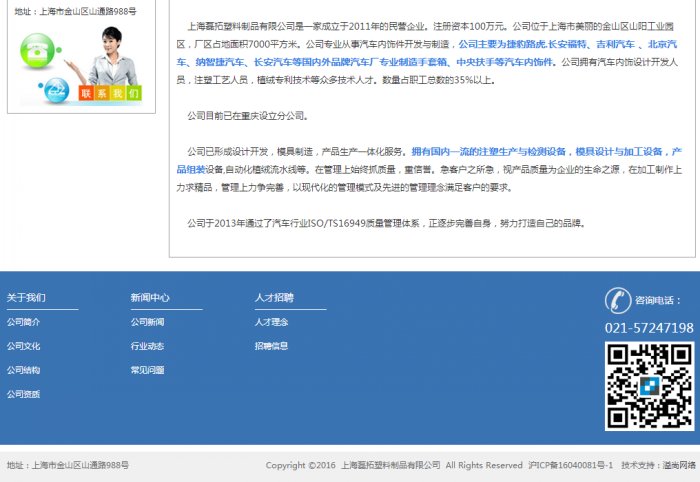 上海磊拓塑料制品有限公司是一家成立于2011年的民營企業(yè)。注冊資本100萬元。公司位于上海市美麗的金山區(qū)山陽工業(yè)園區(qū),廠區(qū)占地面積7000平方米。公司專業(yè)從事汽車內(nèi)飾件開發(fā)與制造,公司主要為捷豹路虎.長安福特、吉利汽車 、北京汽車、納智捷汽車、長安汽車等國內(nèi)外品牌汽車廠專業(yè)制造手套箱、中央扶手等汽車內(nèi)飾件。公司擁有汽車內(nèi)飾設(shè)計(jì)開發(fā)人員,注塑工藝人員,植絨專利技術(shù)等眾多技術(shù)人才。