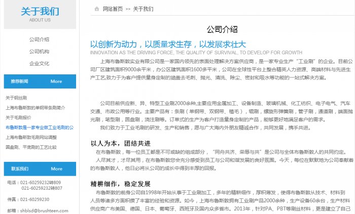 上海布魯斯敦實業(yè)有限公司是一家國內(nèi)領(lǐng)先的表面處理解決方案供應(yīng)商,是一家專業(yè)生產(chǎn)“工業(yè)刷”的企業(yè)。目前公司廠區(qū)建筑面積9000余平米,辦公區(qū)建筑面積1600多平米,公司在全球性平臺上整合精英人力資源、高端材料與先進生產(chǎn)工藝,致力于為客戶提供量身定制的涵蓋去毛刺、拋光、清洗、除塵、密封和吸水等功能的一站式解決方案。公司目前供應(yīng)新、異、特型工業(yè)刷2000余種,主要應(yīng)用金屬加工、設(shè)備制造、玻璃機械、化工紡織、電子電氣、汽車交通、市政公用等行業(yè)。主要產(chǎn)品有:條刷(單鋼帶、雙鋼帶、植毛),輥刷,螺旋形彈簧刷,管子刷,通道刷,端面拋光刷,筆型刷,圓盤刷,澆注刷等。訂單式的生產(chǎn)為客戶打造量身定制的產(chǎn)品,能夠更好地滿足客戶的需求。
