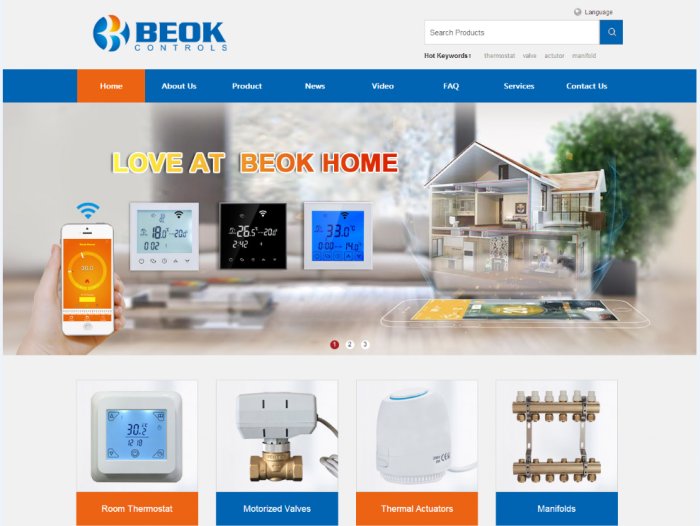 Beok Controls has 2 production factories, over 300 employees, 8 engineer RD team, with ISO9001 quality Standardization, until 2016 , we have 6 big product series , over 120 product models on the sales, such as Room Thermostat, Motorized Valves, Thermal Actuator, Manifolds , all the products have passed with CE and RoHs certificate, and we keep designing 5-8 new products every year for your more choice.