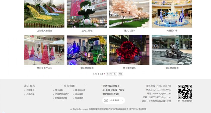 上海顏藝景觀工程有限公司一直遵循以誠為本、客戶至上的服務原則,憑借精英伙伴,始終秉承“創(chuàng)造藝術(shù)的商業(yè)空間”的服務理念,為客戶裝點良好的空間氛圍。同時通過對項目預算、設(shè)計進度的嫻熟把握、最新技術(shù)的運用和設(shè)計水準的不斷超越,完成向客戶提供具有卓越品質(zhì)和成本效益優(yōu)化的設(shè)計作品。上海顏藝景觀工程有限公司以創(chuàng)新為動力,視經(jīng)驗如財富,客戶遍及全國各省、自治區(qū)、直轄市。十七年來成功完成多個大型工程項目,有紅星美凱龍、福州大洋晶典、上海湯臣一品、月星家居、上海新世界、上海恒隆廣場、仲盛世界商場、寶萊百貨、中糧集團、綠地集團、萬達集團、聯(lián)盛集團、上海世博會......公司設(shè)計師有著十多年的美陳裝飾設(shè)計經(jīng)驗及后期配置、現(xiàn)場布置工作經(jīng)驗,公司擁有自己的工廠后盾支持。我們?yōu)榛垩郦毦叩哪W(wǎng)羅每一種美,將文化及品質(zhì)和諧完美地融為一體。我們珍惜客戶給予的每一次機會,努力創(chuàng)造著人與環(huán)境完美結(jié)合的美景。