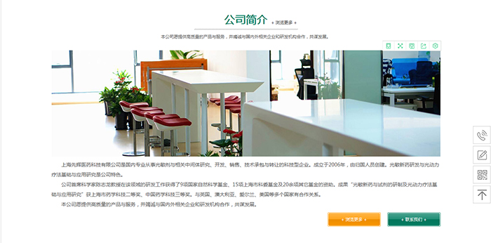 上海先輝醫(yī)藥科技有限公司是國內(nèi)專業(yè)從事光敏劑與相關中間體研究、開發(fā)、銷售、技術(shù)承包與轉(zhuǎn)讓的科技型企業(yè)。成立于2006年,由歸國人員創(chuàng)建。光敏新藥研發(fā)與光動力療法基礎與應用研究是公司特色。公司首席科學家在該領域的研發(fā)工作獲得了9項國家自然科學基金、15項上海市科委基金及20余項其它基金的資助。成果“光敏新藥與試劑的研制及光動力療法基礎與應用研究”獲上海市藥學科技二等獎、中國藥學科技三等獎。與英國、澳大利亞、愛爾蘭、美國等多個國家有合作關系。