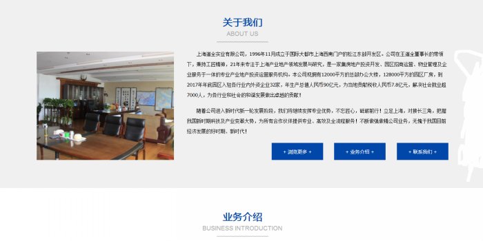 上海道全實(shí)業(yè)有限公司,1996年11月成立于國(guó)際大都市上海西南門(mén)戶的松江東部開(kāi)發(fā)區(qū)。公司在王道全董事長(zhǎng)的帶領(lǐng)下,秉持工匠精神,21年來(lái)專(zhuān)注于上海產(chǎn)業(yè)地產(chǎn)領(lǐng)域發(fā)展與研究,是一家集房地產(chǎn)投資開(kāi)發(fā)、園區(qū)招商運(yùn)營(yíng)、物業(yè)管理及企業(yè)服務(wù)于一體的專(zhuān)業(yè)產(chǎn)業(yè)地產(chǎn)投資運(yùn)營(yíng)服務(wù)機(jī)構(gòu)。本公司現(xiàn)擁有12000平方的總部辦公大樓,128000平方的園區(qū)廠房,到2017年年底園區(qū)入駐各行業(yè)內(nèi)外資企業(yè)32家,年生產(chǎn)總值人民幣90億元,為當(dāng)?shù)刎暙I(xiàn)稅收人民幣7.8億元,解決社會(huì)就業(yè)超7000人,為各行業(yè)和社會(huì)的和諧發(fā)展做出卓越的貢獻(xiàn)!