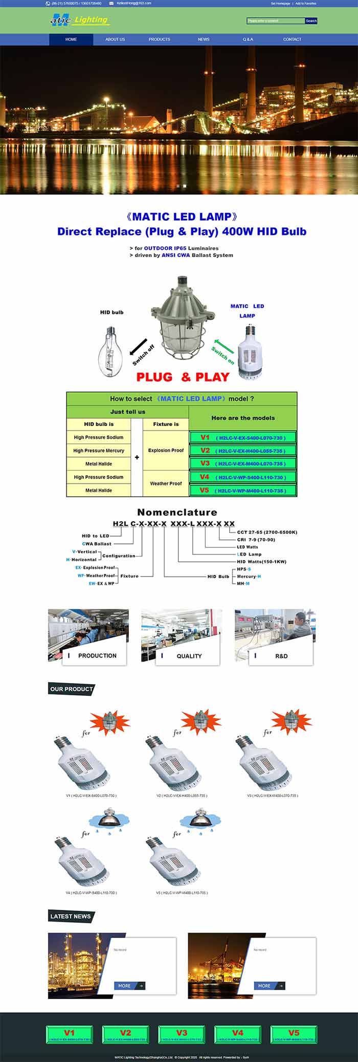 公司簡(jiǎn)介:MATIC (Shanghai) Lighting Technology Co., Ltd. A solely foreign-owned enterprise was founded in 2005 by an Chinese American Mr. Kellent Hong.