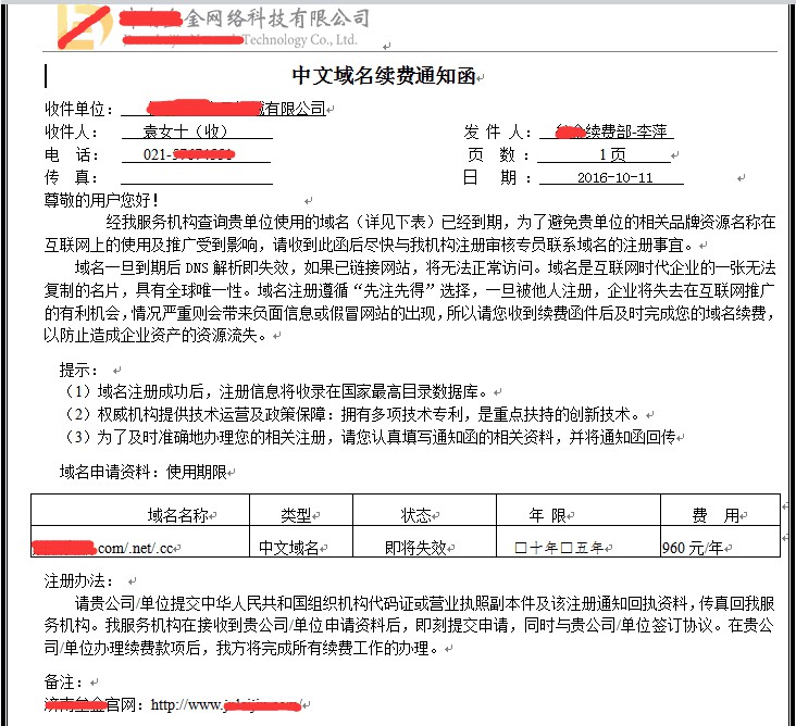 1.最近有很多客戶反應(yīng)收到了中文域名到期的續(xù)費(fèi)通知,如果您之前沒(méi)有買(mǎi)過(guò)中文域名就不存在續(xù)費(fèi)的說(shuō)法,他們所謂的續(xù)費(fèi)通知是讓您重新購(gòu)買(mǎi)一些沒(méi)用的中文域名,然后一次性買(mǎi)10年或20年,當(dāng)然價(jià)格也是比較高的,若您收到了相關(guān)續(xù)費(fèi)通知請(qǐng)與我們核實(shí);