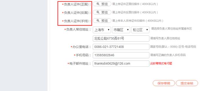 這個可以直接選擇 “同主體負責人信息”或者另外填寫,都可以。