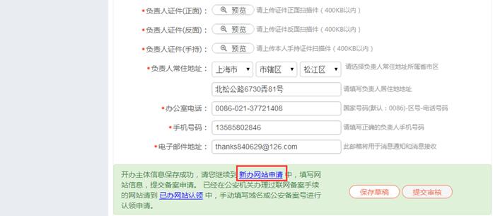 都填好后提交,等待審核就好了,審核通過后有一個網(wǎng)安備案號碼。