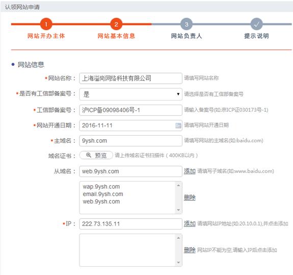 ②網(wǎng)站開通日期就填寫備案上面顯示的日期就好了