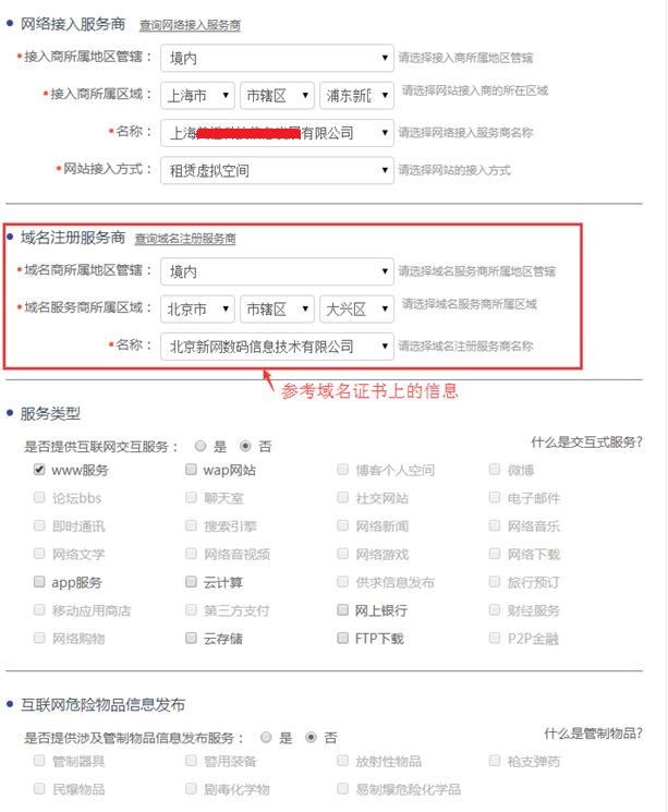 ⑤域名注冊服務商信息按照域名證書上的信息填寫